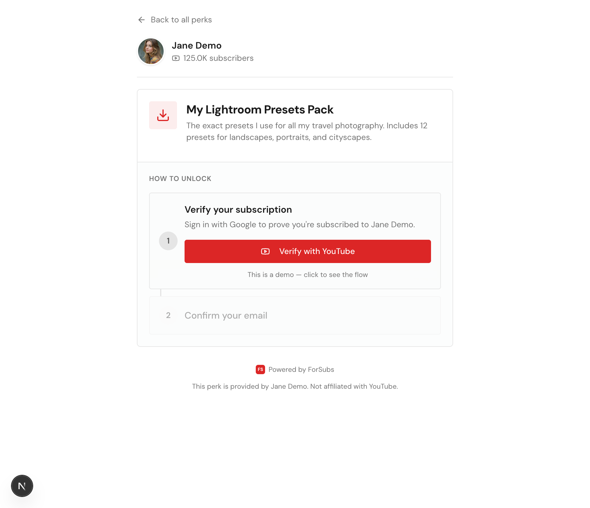 Best for: Creators who want to reward subscribers with downloads, discount codes, or community access. Works for both free subscribers and paid YouTube members.