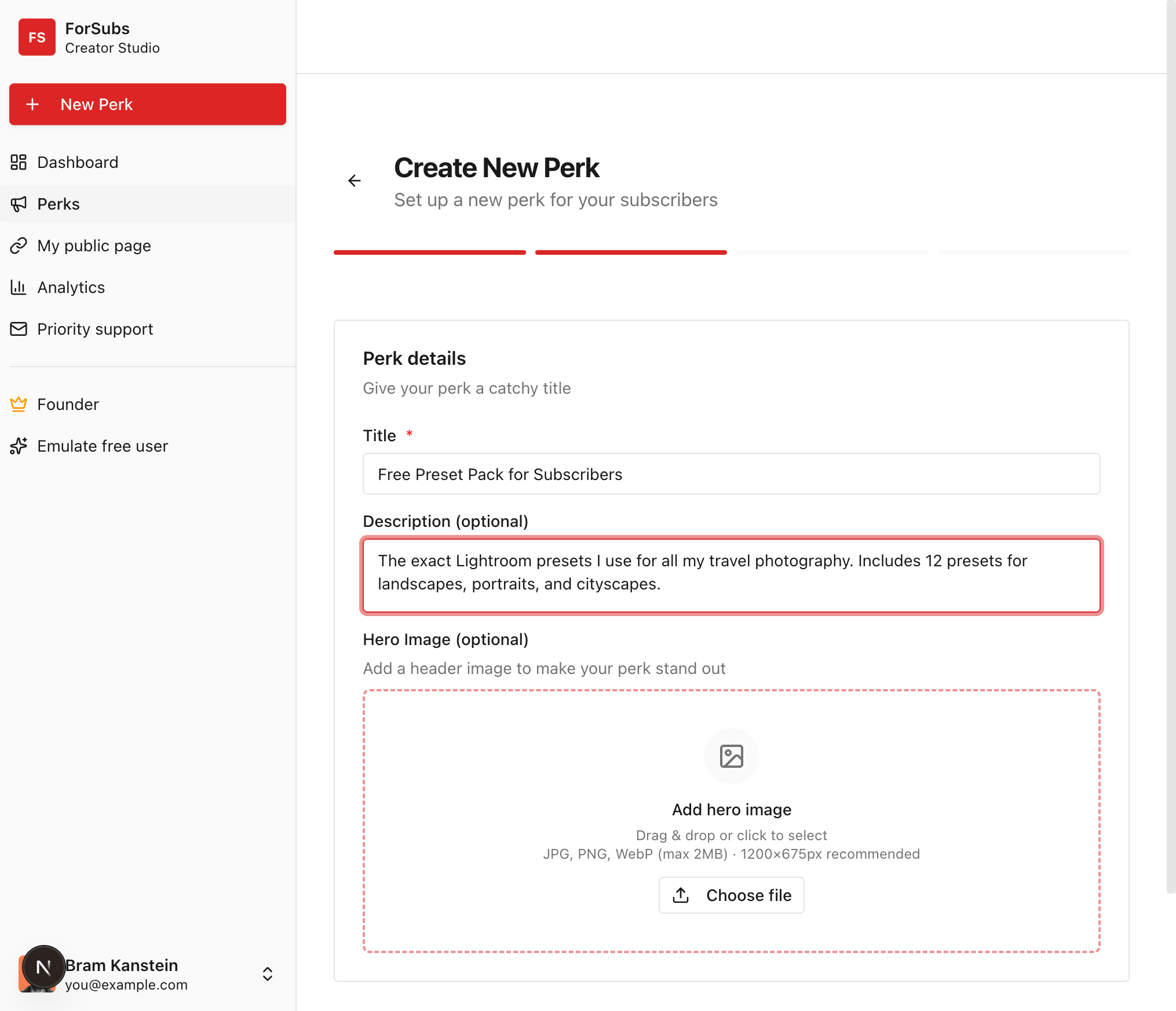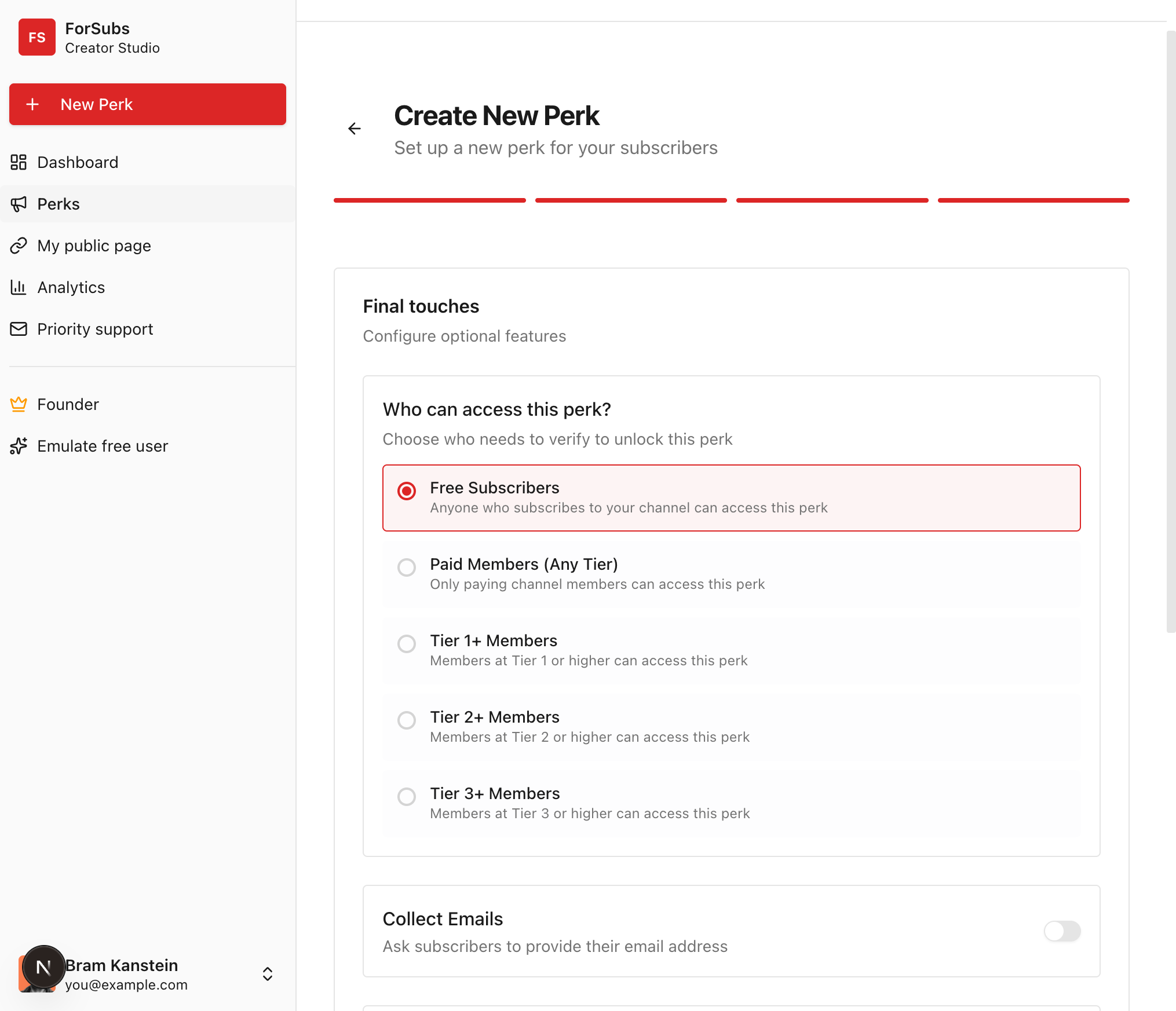ForSubs has five perk templates. Pick the one that matches what you're giving away: